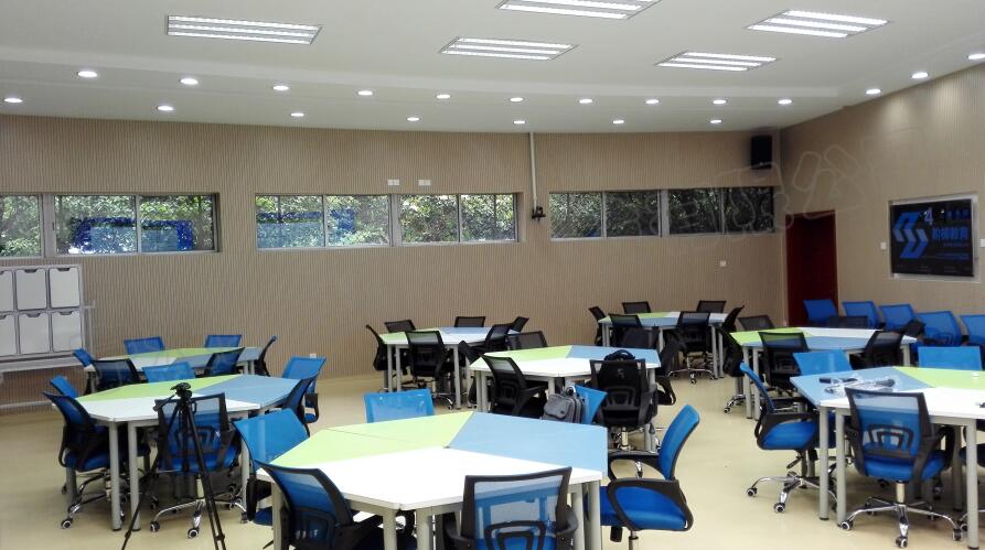 智慧教室不僅重視人機互動,更重視人與人之間的互動。智慧教室在環(huán)境布局上有很大的改動,我們更傾向于教師與學(xué)生互動的形式,激發(fā)學(xué)生的學(xué)習(xí)興趣和自主學(xué)習(xí)能力。所以在智慧教室,我們把豐富多彩的配色和自由拼接的桌椅帶進課堂。在教室使用過程中,智慧教室支持更為開放的情境式、探究式教學(xué),鼓勵小組互動討論,通過移動端投屏加強師生之間、生生之間的實時交流與反饋。