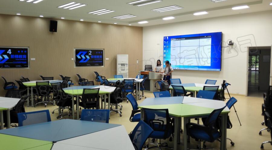 隨著學(xué)校信息化的發(fā)展,學(xué)校提出需求建設(shè)多功能教室,具有雙屏教學(xué)展示、教學(xué)互動、課程實景錄播、設(shè)備智能控制等功能。 階梯公司在詳細了解了學(xué)校的需求后,為學(xué)校提出了智慧教室的整體解決方案。